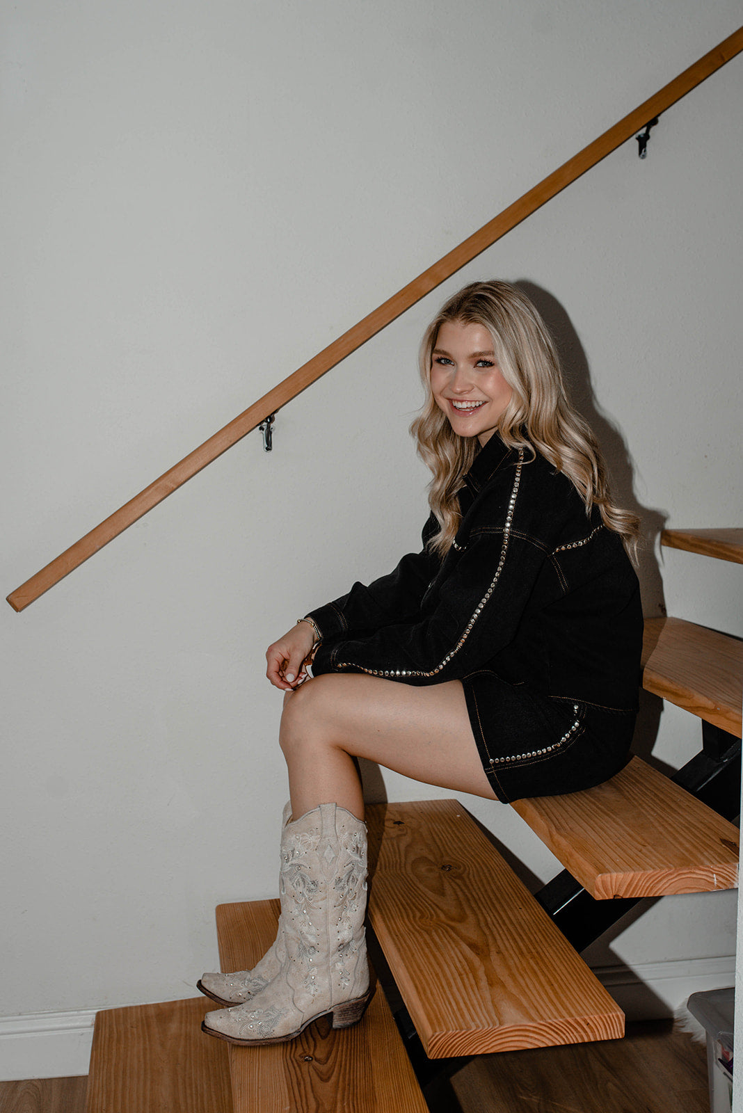 This black denim set is perfect for game days, a night out. You could even wear it separately and mix and match for infinite outfit options!